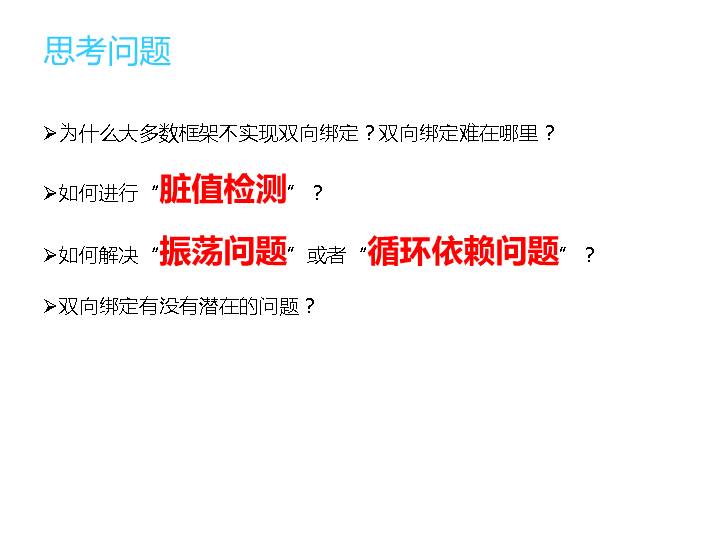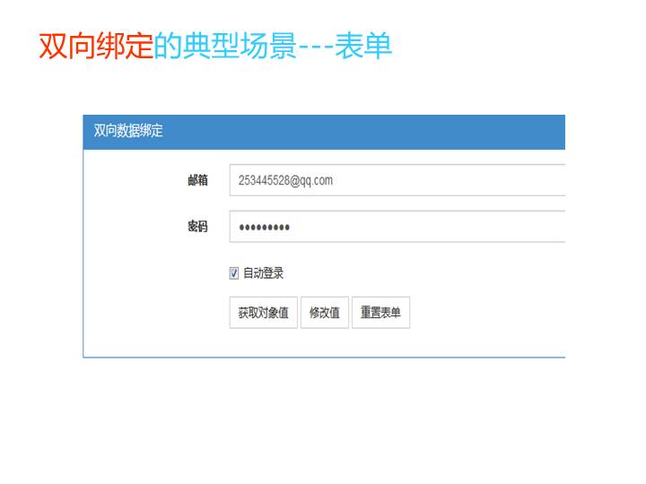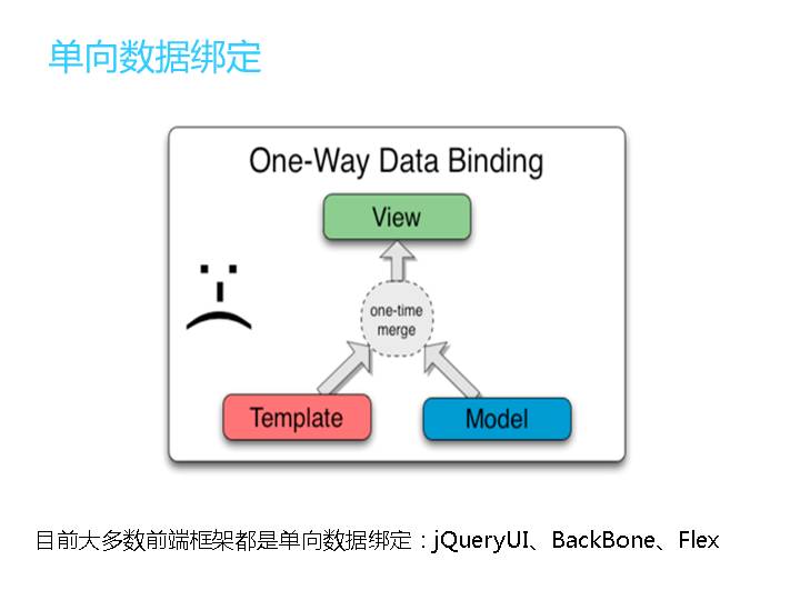 目前大多数前端框架都是单向数据绑定:jQueryUI、BackBone、Flex