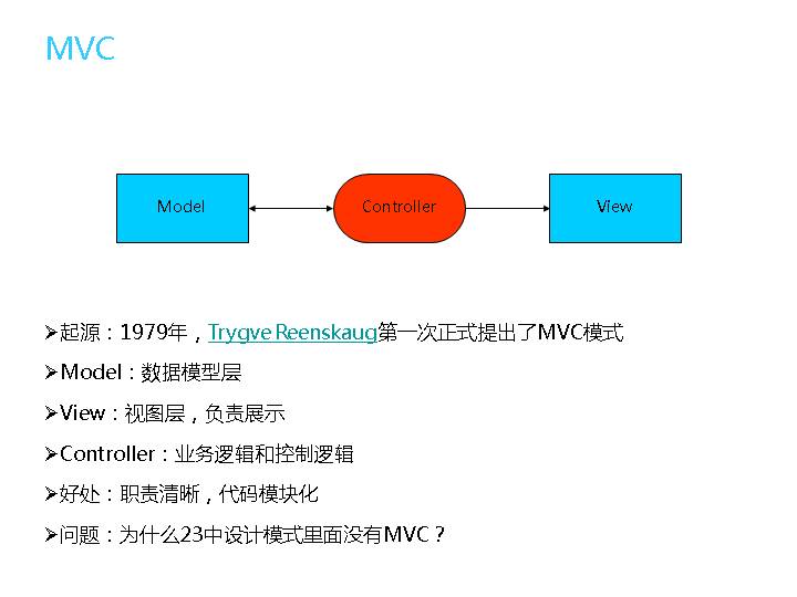 起源:1979年,Trygve Reenskaug第一次正式提出了MVC模式