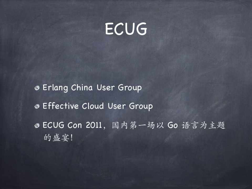 ECUG Con 2011,国内第⼀一场以 Go 语⾔言为主题 的盛宴!