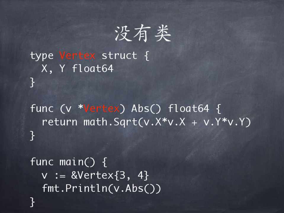 func main() { v := &Vertex{3, 4} fmt.Println(v.Abs())