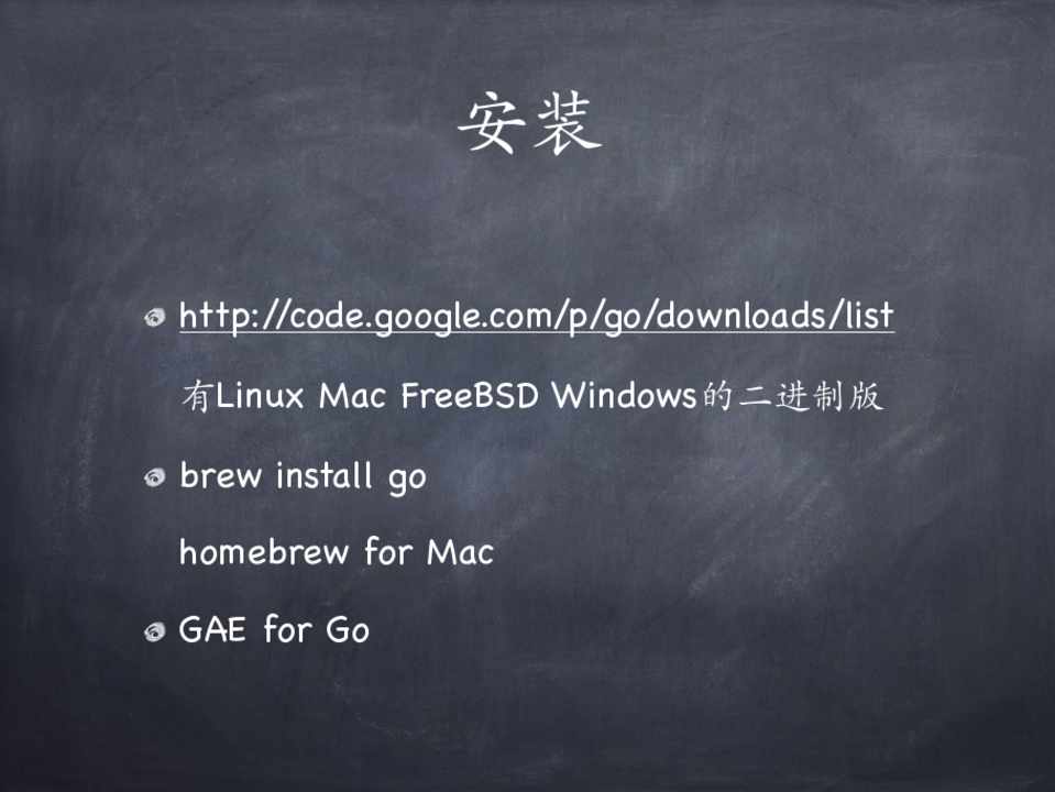 http://code.google.com/p/go/downloads/list 有Linux Mac FreeBSD Windows的⼆二进制版
