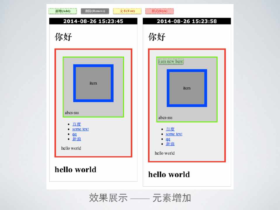 效果展⽰示 —— 元素增加