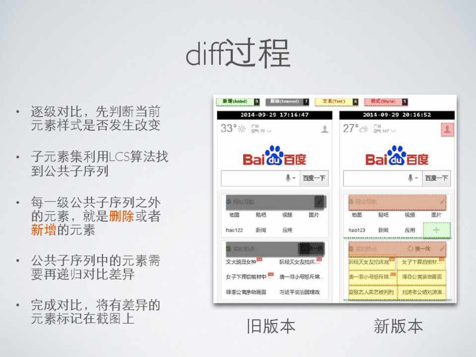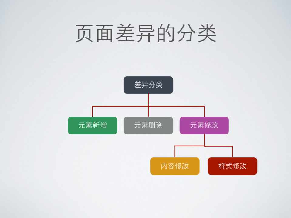 每种差异的变化都可以从DOM结构上反映出来, 单纯基于图⽚片的对⽐比会存在很⼤大的误判。