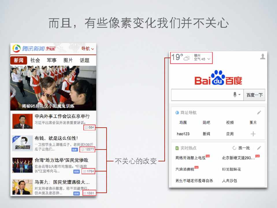 • 完成对⽐比,将有差异的 元素标记在截图上