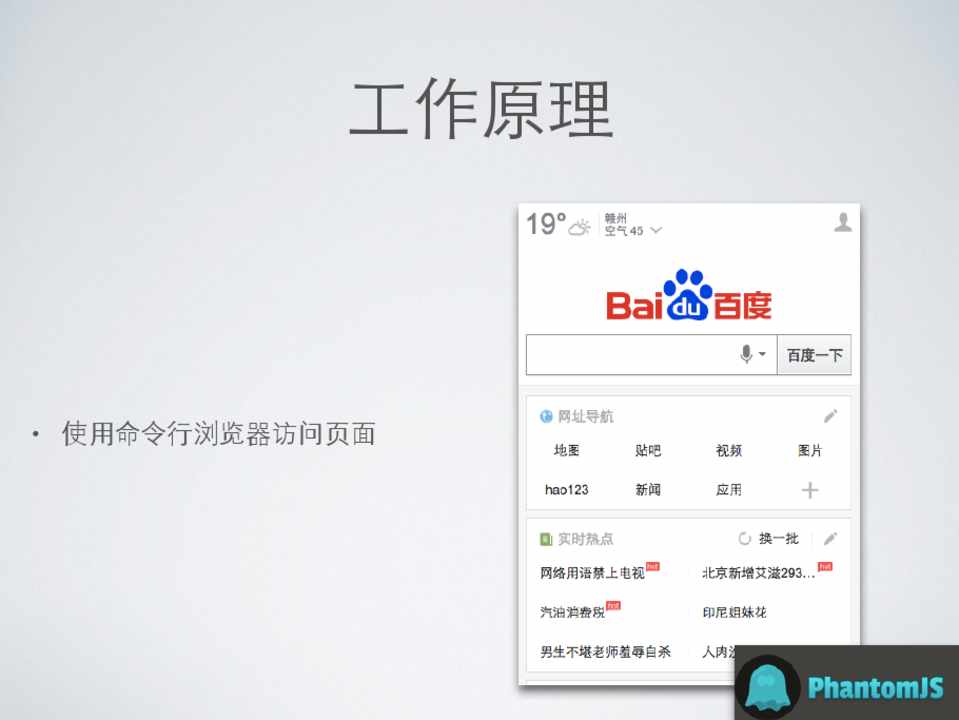 • 使⽤用phantomjs作为命令⾏行浏览器