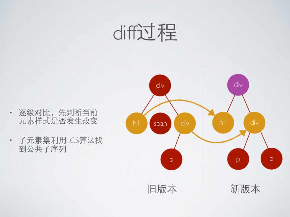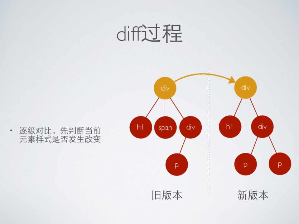 • 逐级对⽐比,先判断当前 元素样式是否发⽣生改变