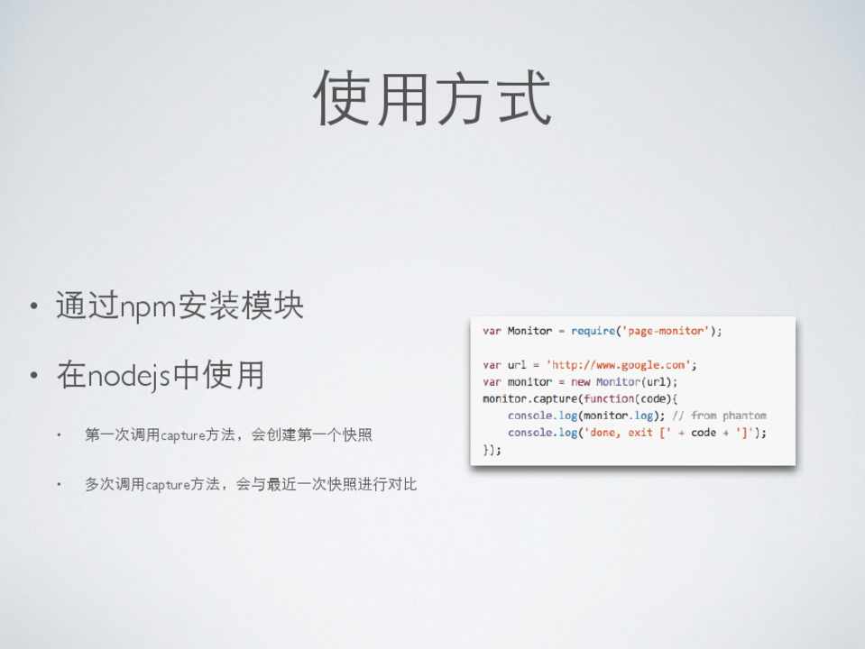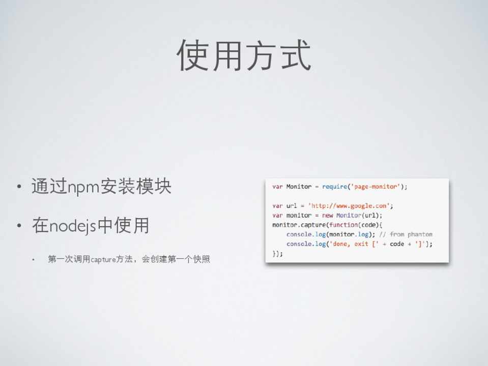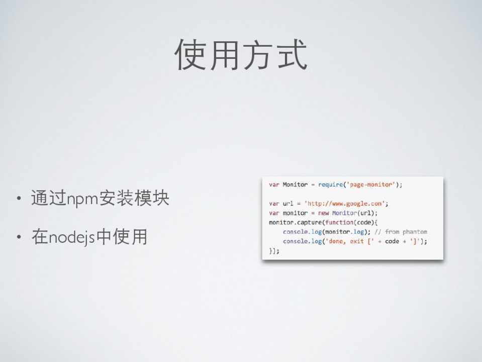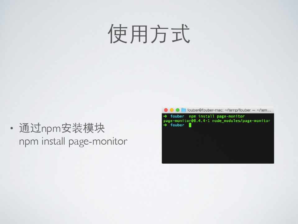 • 通过npm安装模块 npm install page-monitor