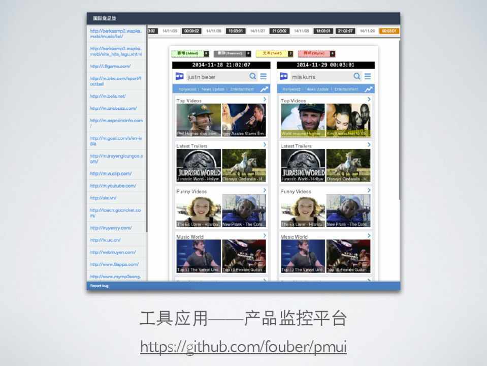 ⼯工具应⽤用——产品监控平台 https://github.com/fouber/pmui