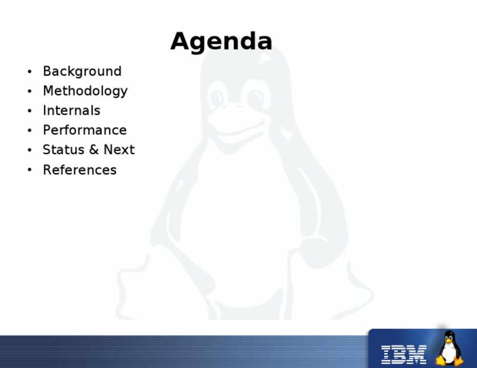 ● Background ● Methodology ● Internals ● Performance ● Status & Next ● References