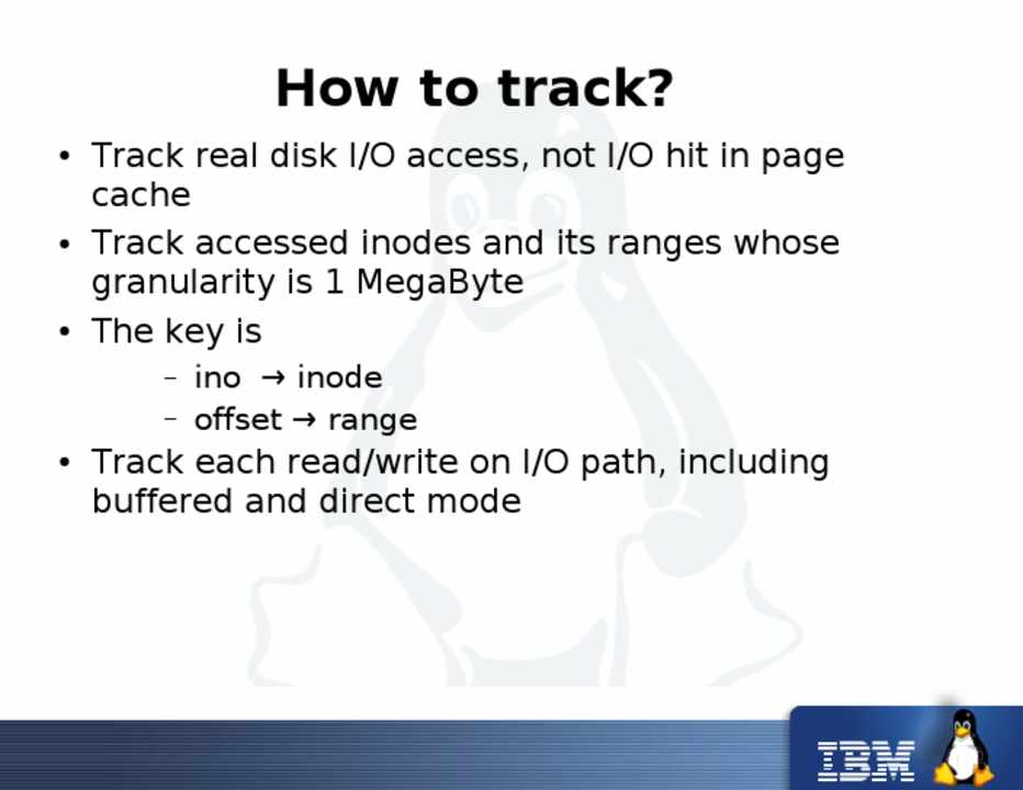 ● Track accessed inodes and its ranges whose granularity is 1 MegaByte