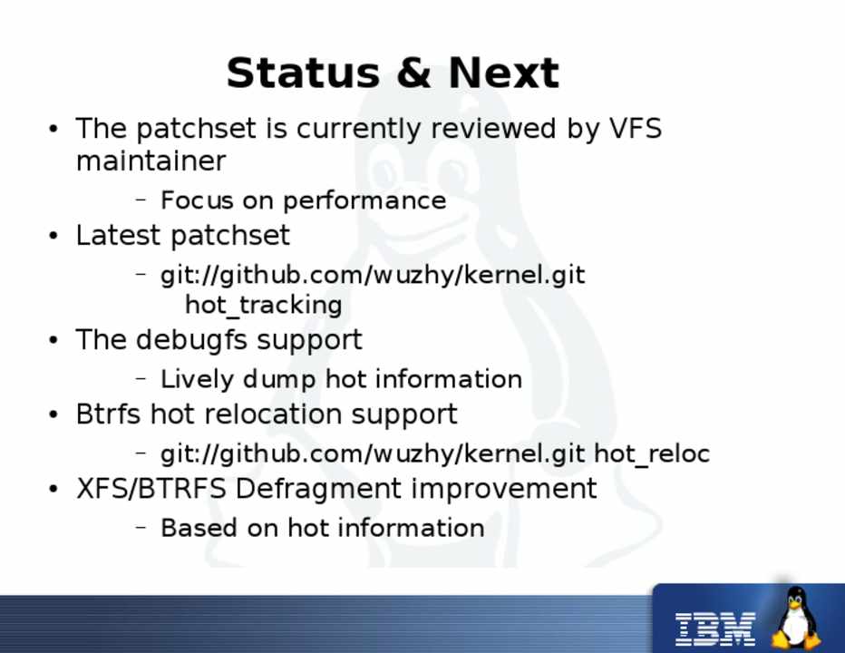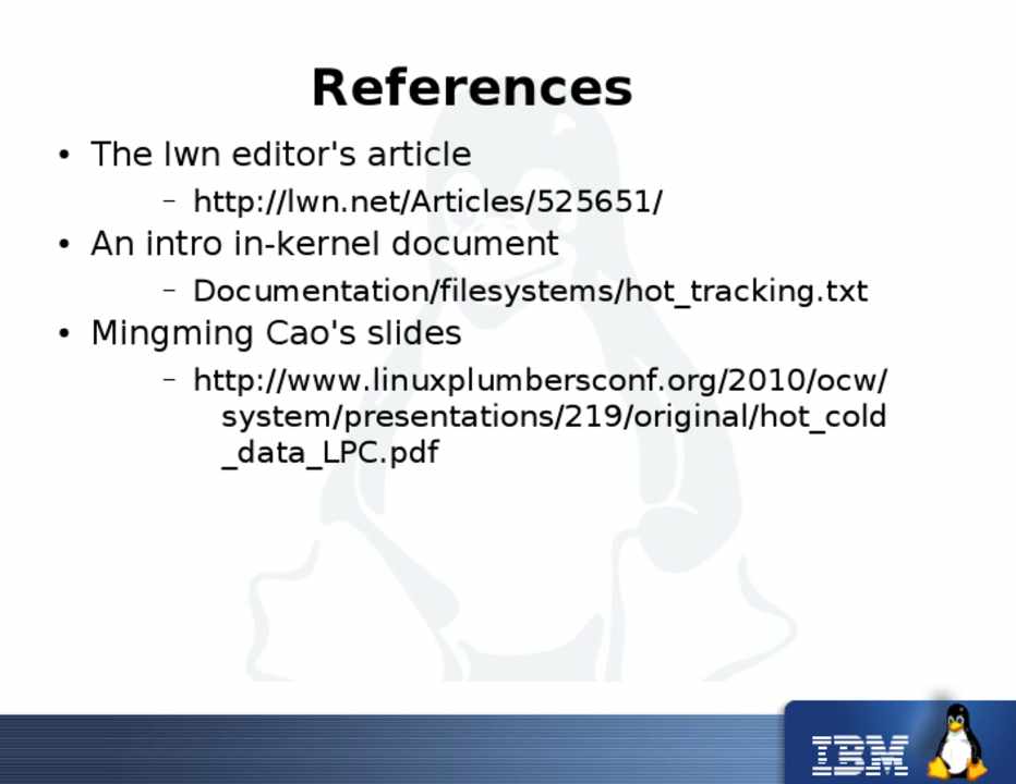 – http://www.linuxplumbersconf.org/2010/ocw/ system/presentations/219/original/hot_cold _data_LPC.pdf