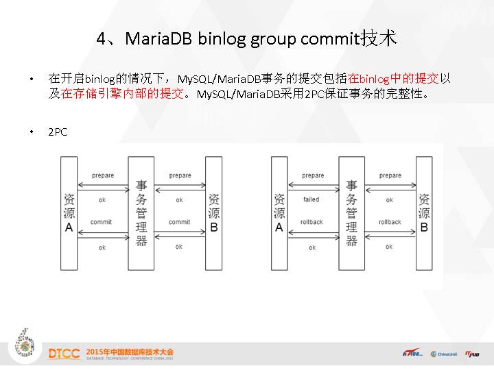 在开启binlog的情况下,MySQL/MariaDB事务的提交包括在binlog中的提交以及在存储引擎内部的提交。MySQL/MariaDB采用2PC保证事务的完整性。
