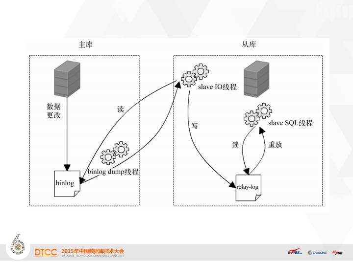 在主库上会开启一个dump线程,在从库上开启了一个IO线程,一个SQL线程,。