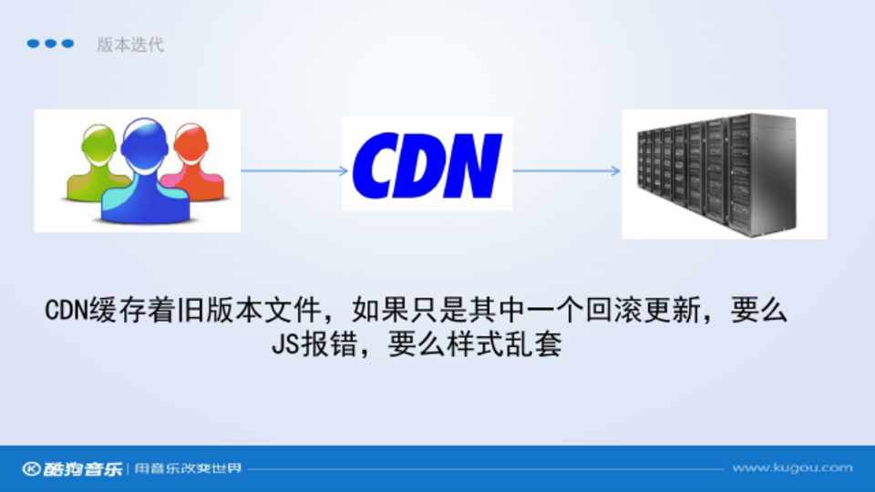 CDN缓存着旧版本文件,如果只是其中一个回滚更新,要么 JS报错,要么样式乱套