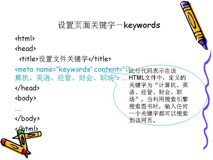 <meta name=”keywords” content=”计算机、英语、经管、财会、职场”> …