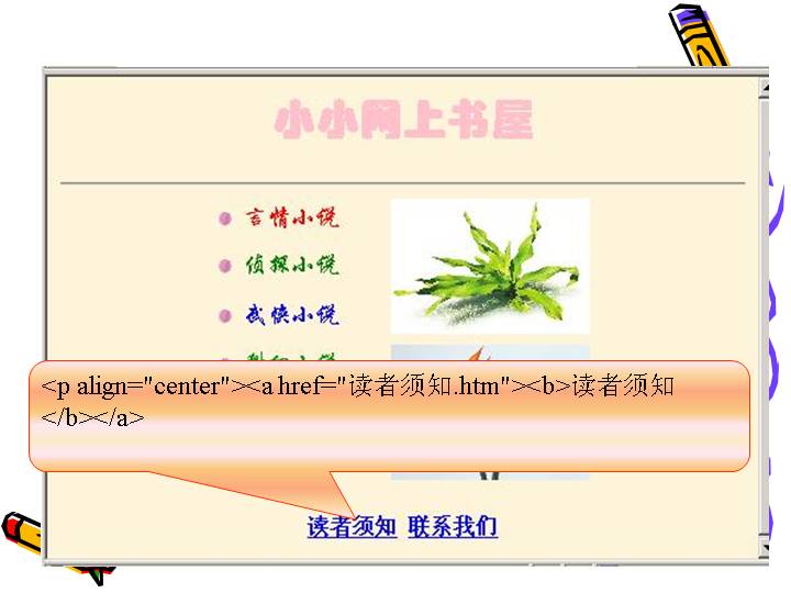 此行代码表示在该HTML文件中,定义的关键字为“计算机、英语、经管、财会、职场”,当利用搜索引擎搜索图书时,输入任何一个关键字都可以搜索到该网页。