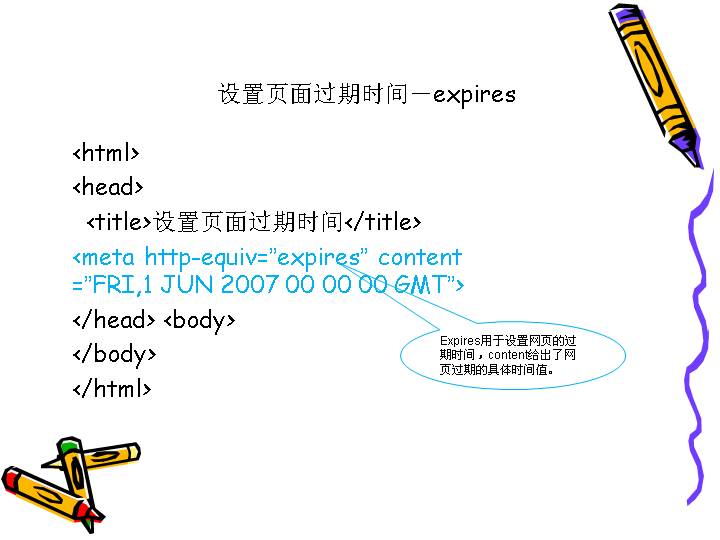 expires用于设计页面过期时间,content属性设置具体过期时间值。
