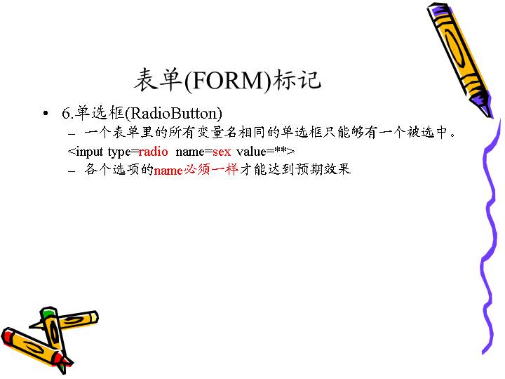一个表单里的所有变量名相同的单选框只能够有一个被选中。