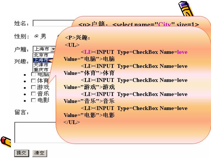 <LI><INPUT Type=CheckBox Name=love Value="电脑">电脑