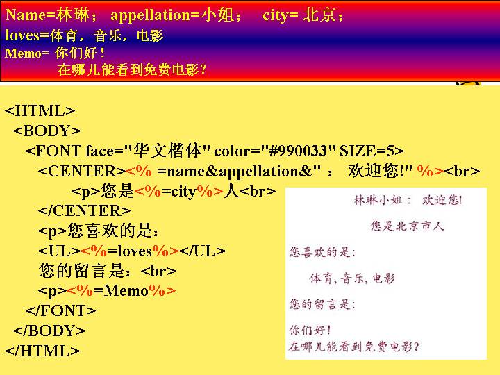 <CENTER><% =name&appellation&" : 欢迎您!“ %><br>