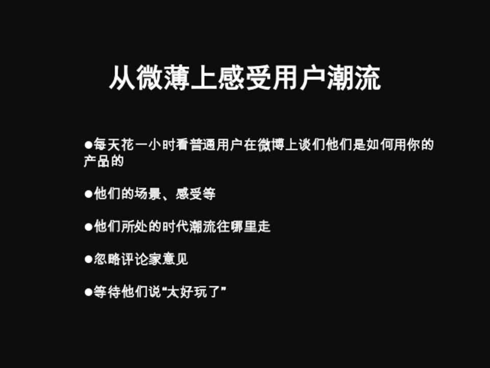 每天花一小时看普通用户在微博上谈们他们是如何用你的 产品的