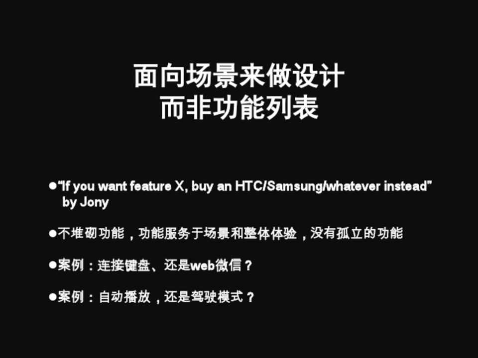不堆砌功能,功能服务于场景和整体体验,没有孤立的功能