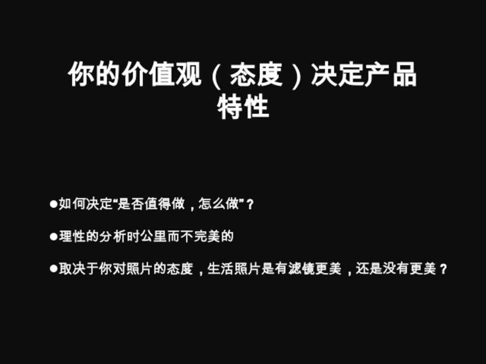 你的价值观(态度)决定产品 特性