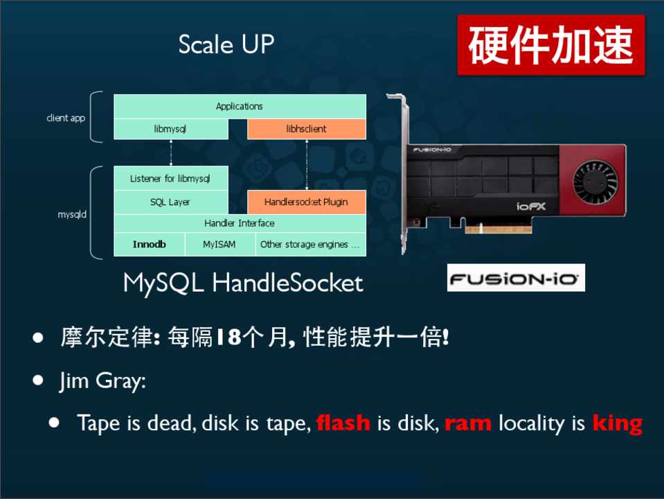 • 摩尔定律: 每隔18个月, 性能提升⼀一倍! • Jim Gray: • Tape is dead, disk is tape, flash is disk, ram locality is king