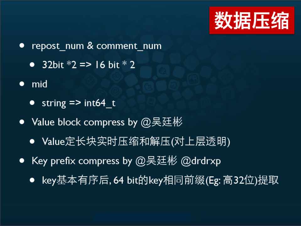 • Value block compress by @吴廷彬 • Value定长块实时压缩和解压(对上层透明)