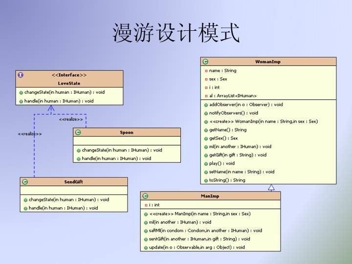 (2)使用多个专门的接口比使用单一的总接口要好.根据客户需要的不同,而为不同的客户端提供不同的服务是一种应当得到鼓励的做法.就像"看人下菜碟"一样,要看客人是谁,再提供不同档次的饭菜.(3)胖接口会导致他们的客户程序之间产生不正常的并且有害的耦合关系.当一个客户程序要求该胖接口进行一个改动时,会影响到所有其他的客户程序.因此客户程序应该仅仅依赖他们实际需要调用的方法.