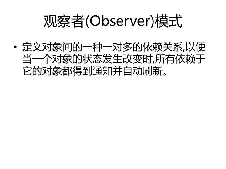 定义对象间的一种一对多的依赖关系,以便当一个对象的状态发生改变时,所有依赖于它的对象都得到通知并自动刷新。