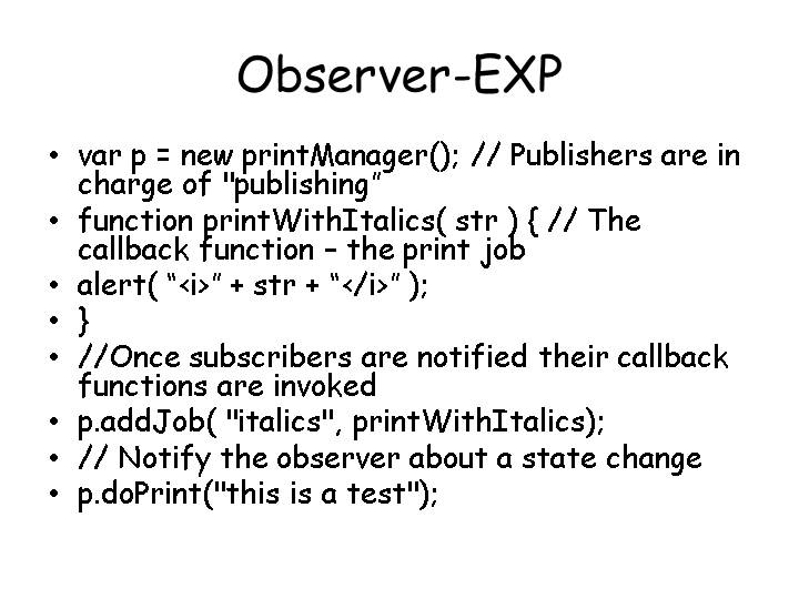 var p = new printManager(); // Publishers are in charge of "publishing”