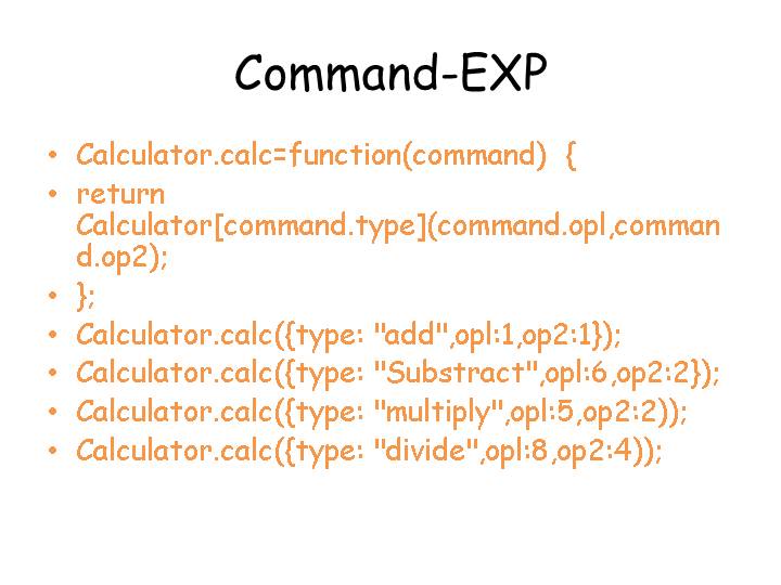 Calculator.calc({type: "Substract",opl:6,op2:2});