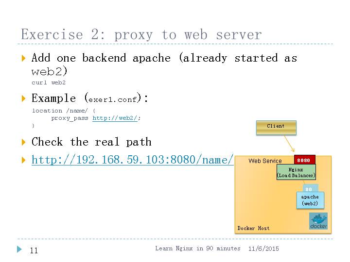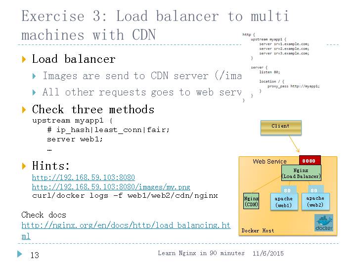 Hints:http://192.168.59.103:8080 http://192.168.59.103:8080/images/my.png curl/docker logs –f web1/web2/cdn/nginx