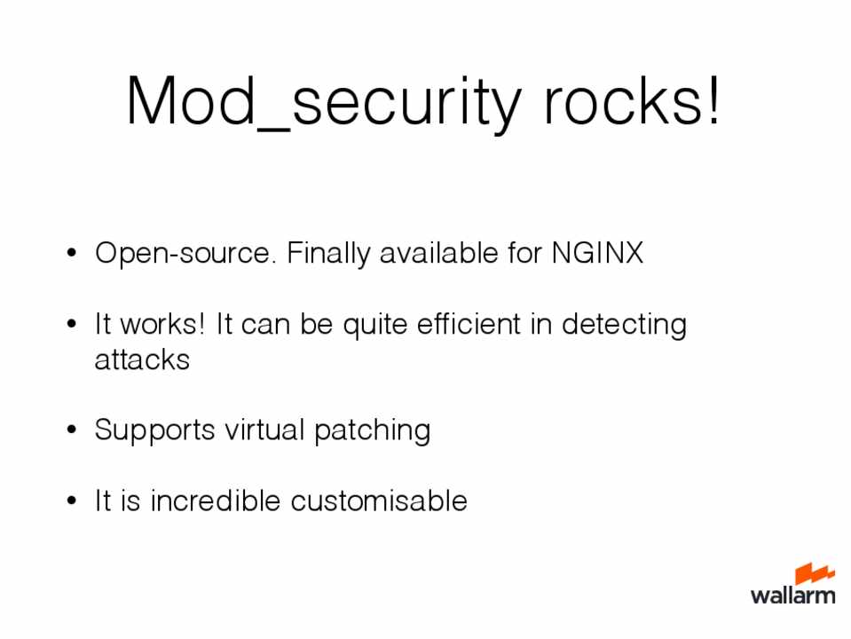 • Open-source. Finally available for NGINX • It works! It can be quite efficient in detecting