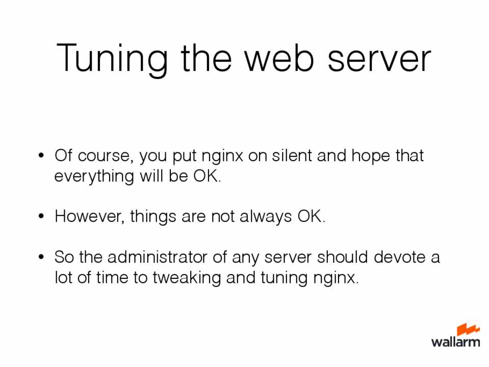 • NGINX has secure-enough defaults • Sometimes administrators can make mistakes