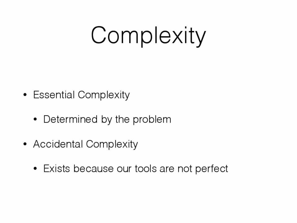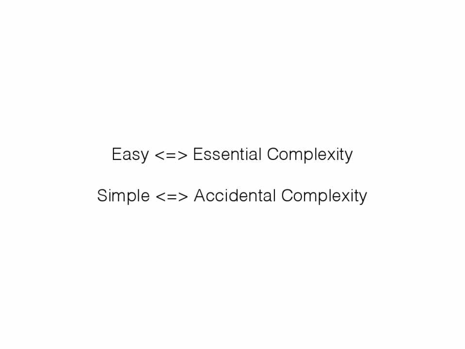 Easy <=> Essential Complexity Simple <=> Accidental Complexity