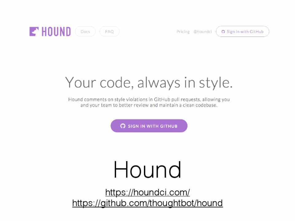 https://houndci.com/ https://github.com/thoughtbot/hound