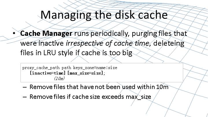 proxy_cache_path /tmp/cache2 keys_zone=two:2m levels=1:2 inactive=20s;