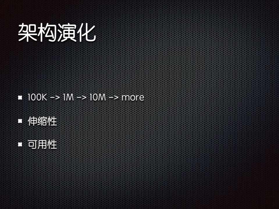 100K -> 1M -> 10M -> more 伸缩性 可⽤用性