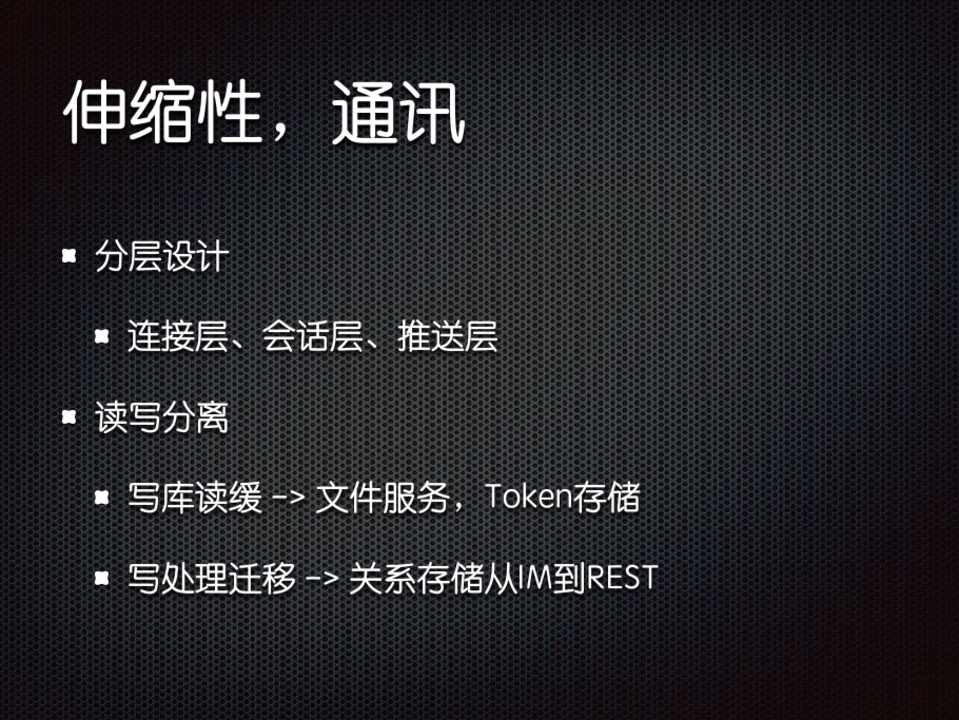 读写分离 写库读缓 -> ⽂文件服务,Token存储 写处理迁移 -> 关系存储从IM到REST
