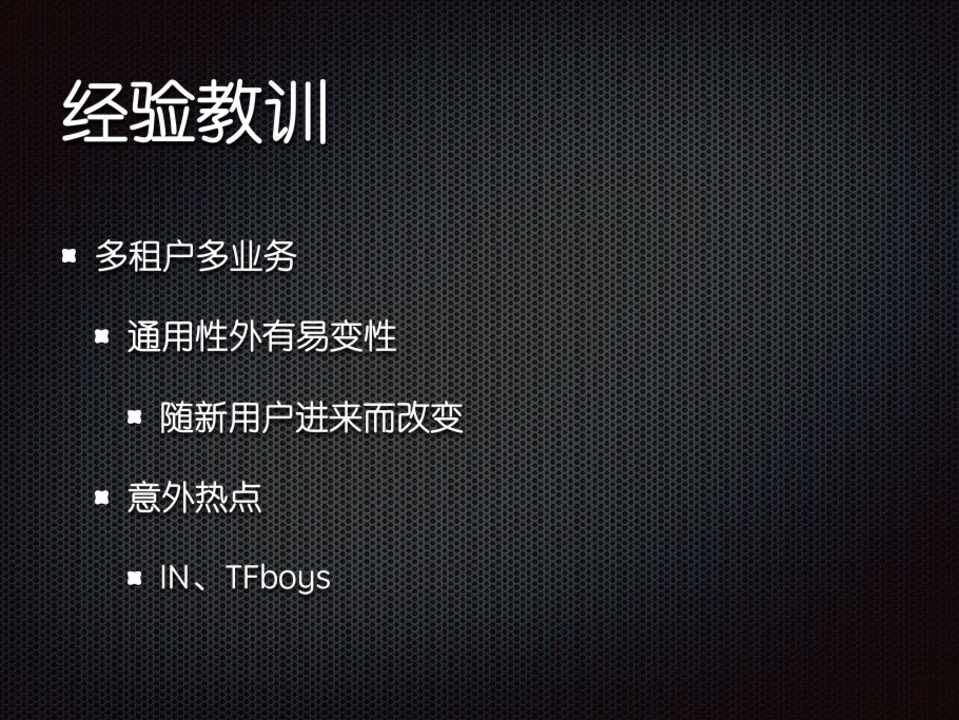 多租户多业务 通⽤用性外有易变性 随新⽤用户进来⽽而改变 意外热点 IN、TFboys