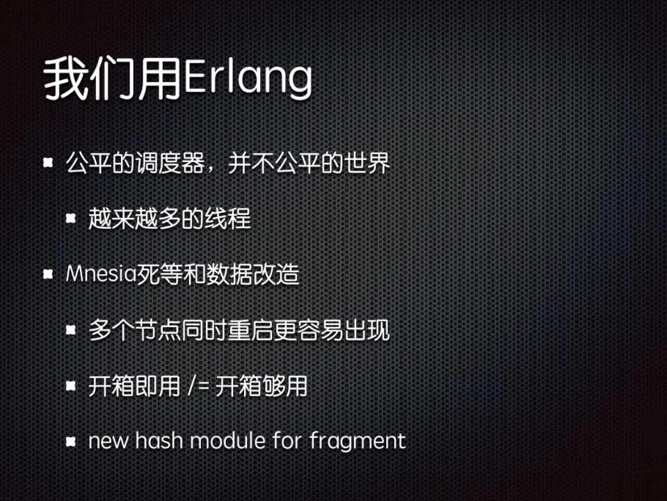 Mnesia死等和数据改造 多个节点同时重启更容易出现 开箱即⽤用 /= 开箱够⽤用 new hash module for fragment