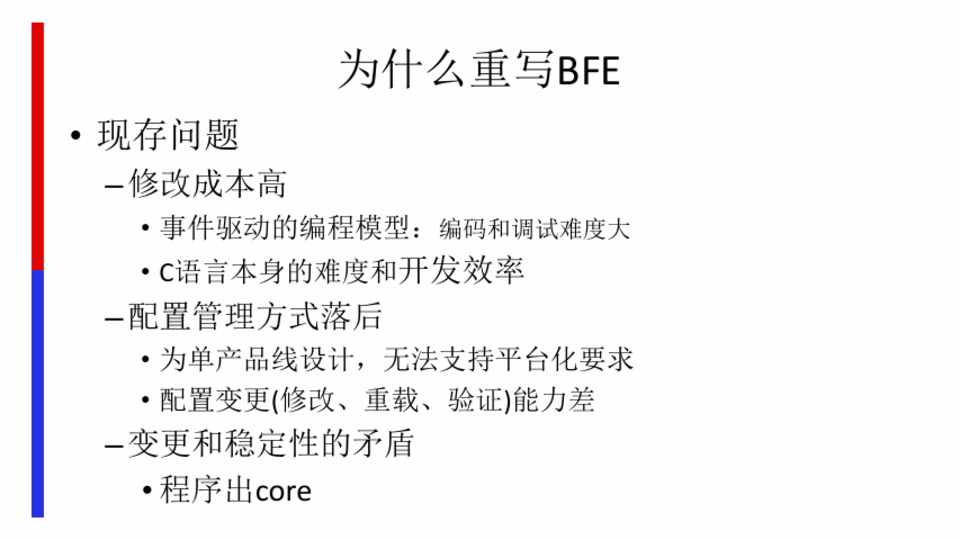 • 为单产品线设计,无法支持平台化要求 • 配置变更(修改、重载、验证)能力差