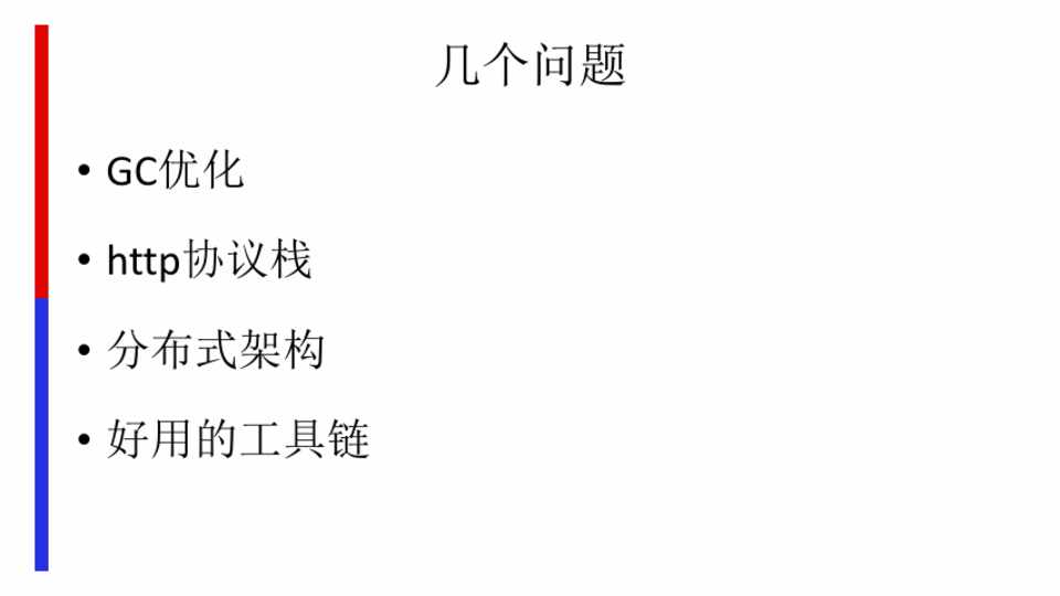 • GC优化 • http协议栈 • 分布式架构 • 好用的工具链