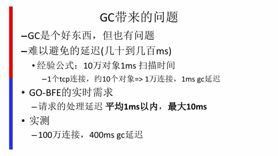 – GC是个好东西,但也有问题 – 难以避免的延迟(几十到几百ms)