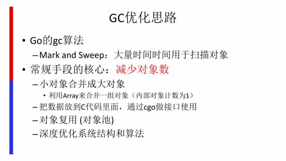 – 通过Cgo手工维护,很危险 (go中调用c代码) – 不能解决问题:大量go对象难以避免