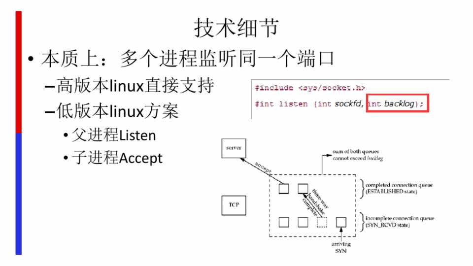 • 父进程Listen • 子进程Accept