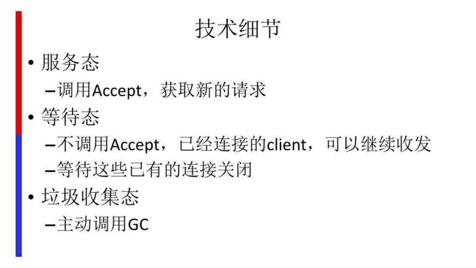 – 不调用Accept,已经连接的client,可以继续收发 – 等待这些已有的连接关闭