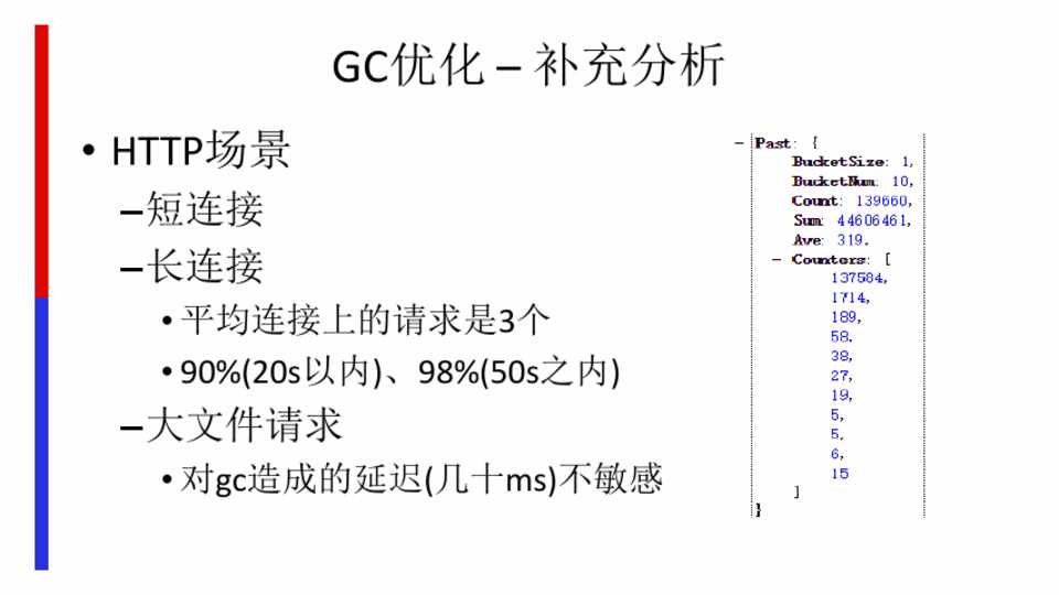 • 平均连接上的请求是3个 • 90%(20s以内)、98%(50s之内)